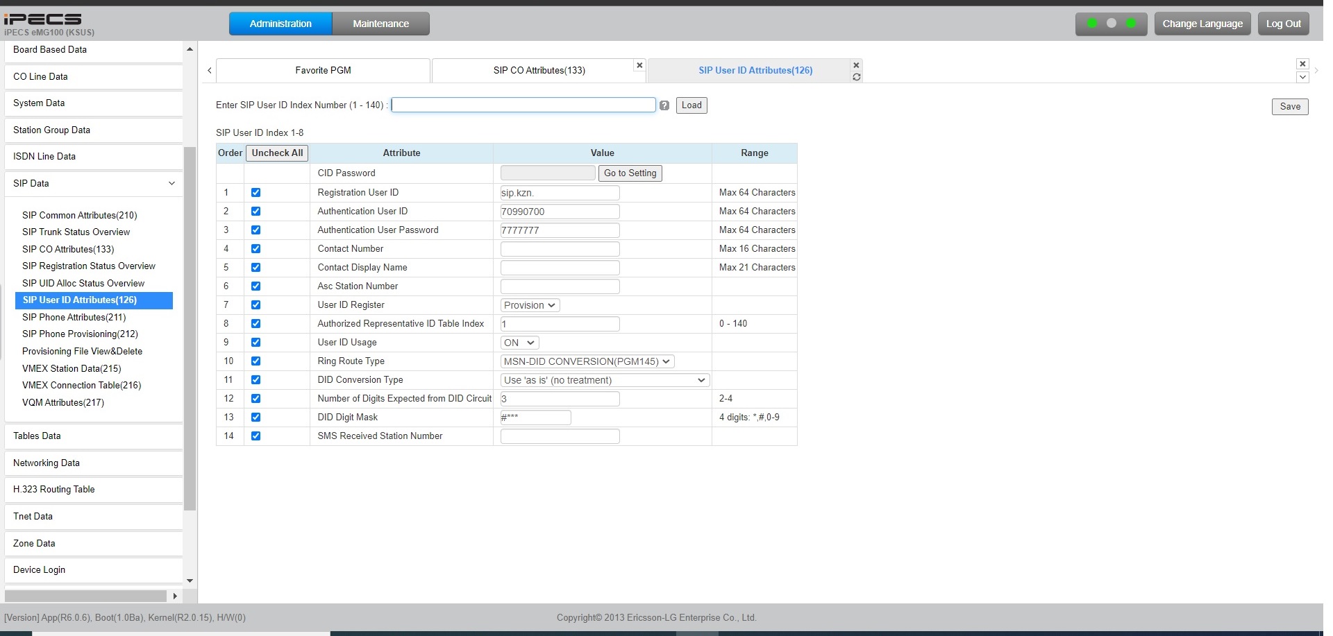 В 126-й программе Registration User ID должен быть в виде sip.kzn.@192.168.16.1. |